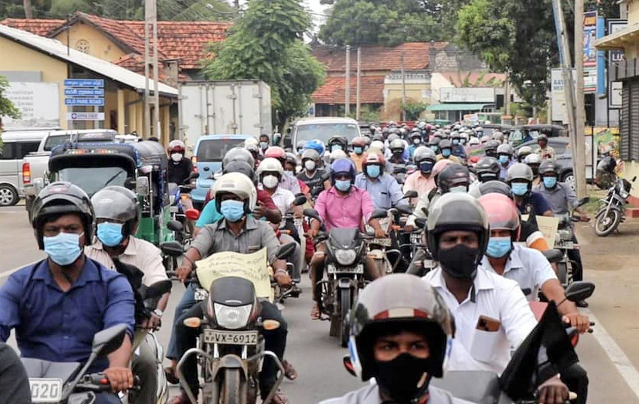ஆகஸ்ட் 4 அன்று, நூற்றுக்கணக்கான ஆசிரியர்கள் கண்டியில் இருந்து கொழும்புக்கு 100 கிலோமீட்டர் நடைப்பயணத்தைத் தொடங்கினர். ஆசிரியர்கள் 70 கிலோமீட்டர் தூரம் நடந்து பஸ்யால பிரதேசத்தை அடைந்த போது, ஆகஸ்ட் 7 அன்று, ஆர்ப்பாட்டக் காரர்கள் கோவிட்-19 வைரஸை பரப்புகின்றனர் என்று அரசாங்கமும் ஊடகங்களும் முன்னெடுத்த கொடூரமான பிரச்சாரத்திற்கு பிரதிபலிப்பாக, தொழிற்சங்கங்கள் பேரணியை நிறுத்திக்கொண்டன. எவ்வாறாயினும், இப்போது பேரழிவுகரமான அளவிற்கு வளர்ந்துள்ள தொற்றுநோய்க்கு பொறுப்பாளிகள் ஆசிரியர்கள் அல்ல, மாறாக ஒட்டுமொத்த அரசாங்கமும் ஆளும் வர்க்கமுமுமே பொறுப்பாகும்.